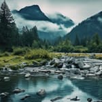 Фото: природа, горы, река, лес, облака, пейзаж, камни
