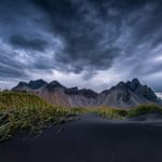 Удивительная заставка на рабочий стол из рубрики Природа. Теги: #черный песок #трава #тучи #природа #небо #пейзаж #горы. Размер оригинала обоев 7360x4912. Это изображение уже скачали 107 раз.