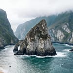 Классная картинка из раздела Природа. Теги: #водопад #пляж #облака #скалы #пейзаж #океан #горы #природа. Разрешение оригинала фотографии 5504x3072. Это изображение уже скачали 81 раз.