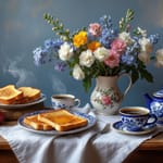 Фон для рабочего стола: натюрморт, завтрак, розы, стол