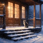 Обои: кот, зима, зимний уют, нейросеть, крыльцо