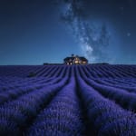 Обои: лаванда, ночь, дом, пейзаж, звезды, поля, природа