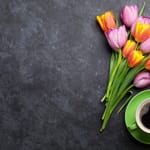 Классная картинка из категории Цветы. Теги: #coffee cup #flowers #pink #colorful #tulips #тюльпаны #букет #цветы. Исходный размер фотографии 5616x3744. Эти обои скачали уже 1 раз.