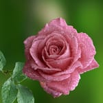Обои на рабочий стол: Роза, цветок, капли, зеленый, листья