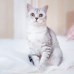 Кошка, кот, постель, взгляд, серый, полосатый...