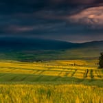 Пейзаж, природа, поля, горы, облака, закат...