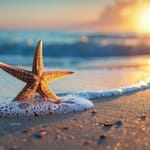 Прикольное фото из раздела Океан. Теги: #волны #песок #природа #пляж #закат #море #звезда. Изначальное разрешение этих обоев 5376x3584. Это фото уже скачали 19 раз.