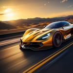 Прикольное фото из категории Машины. Теги: #закат #скорость #пейзаж #дизайн #золотой #спорткар #автомобиль. Исходное разрешение этих обоев 7318x4716. Данные обои уже скачали 90 раз.