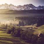 Зелень, лес, трава, пейзаж, лето, горы, небо...