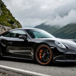 Классная картинка из категории Машины. Теги: #автомобильный дизайн #16:9 #скалы #зелень #дорога в горах #пейзаж #аэродинамический дизайн #немецкий автопром #спортивные диски #оранжевые акценты на дисках #мощь. Оригинальный размер фотографии 3840x2194. Это изображение уже скачали 5 раз.