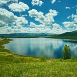 Картинка: озеро, природа, небо, облака, горы, пейзаж, зелень