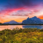 Фон для рабочего стола: пейзаж, горы, озеро, закат