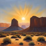 Великолепные обои на рабочий стол из рубрики Рисованные. Теги: #скалы #солнце #природа #пустыня #горы #закат #пейзаж. Размер картинки 4992x4992. Данную картинку уже скачали 252 раза.